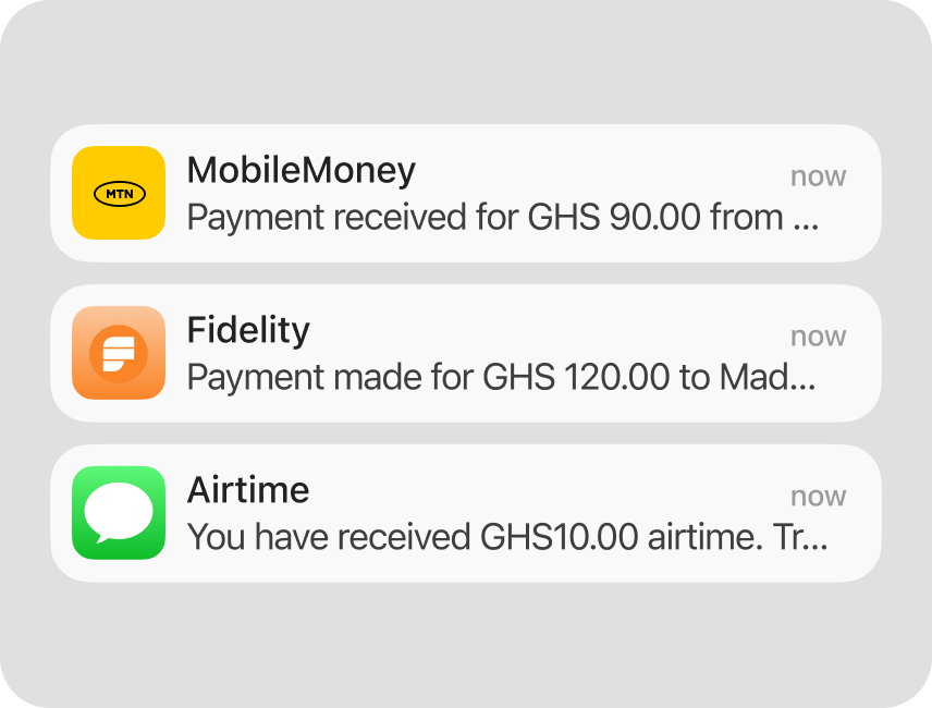 No matter the source — bank, mobile money, or fintech wallet — Seemoni tracks every transaction that hits your phone.
